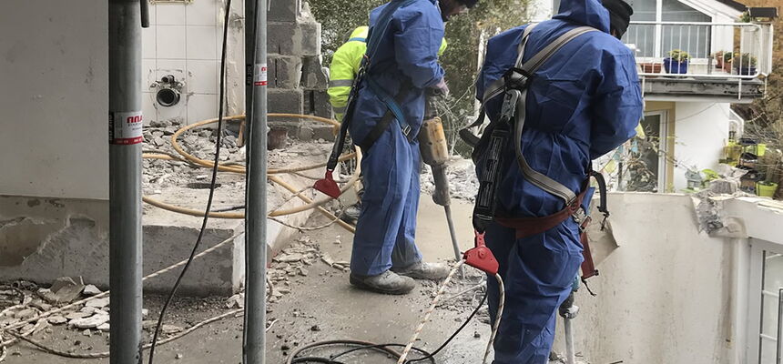 An folgendem Bauvorhaben wurde eine gevoutete Stb.-Bodenplatte unsererseits mittels Perforationsbohrungen vom Bestand getrennt und fachgerecht ausgebaut sowie entsorgt.