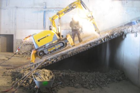 Hier hatten wir bei einer Entkernung an einem Gewerbeobjekt in Wuppertal unseren Abbruchroboter im Einsatz. Effiziente Stemmarbeiten im Gefahrenbereich. Der Einsatz hat sich bewährt.