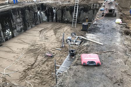 An folgendem Bauvorhaben wurde eine mit einer Spundwand verkleidete Schlitzwand unsererseits auf Maß gekürzt.